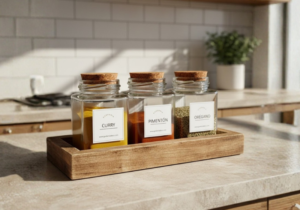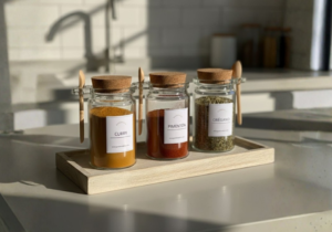 Especiero con cuchara y tapa de corcho